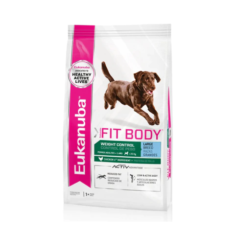 Eukanuba Fit Body weight controles un alimento utilizado para el entrenamiento y la preparación física de perros adultos y mayoes a 1 año talla mediana. Fit Body es la fórmula indicada para perros que necesitan recuperar y mantener una condición corporal adecuada, y es el complemento ideal a la hora de comenzar a llevar una vida más activa.