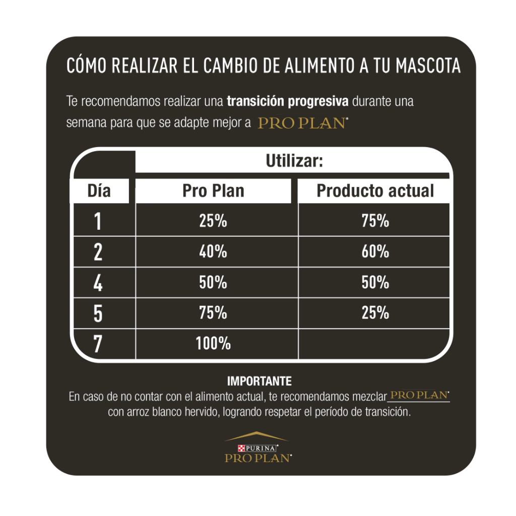 Purina Pro Plan provee nutrición de avanzada para proteger a los perros mayores de 7 años, manteniéndolos sanos y activos. Formulado con fuentes naturales de glucosamina, que ayudan a mantener las articulaciones sanas y una movilidad óptima. Contiene una proporción equilibrada de proteína y grasa para mantener la masa muscular magra, una combinación de antioxidantes naturales y vitaminas E y C.