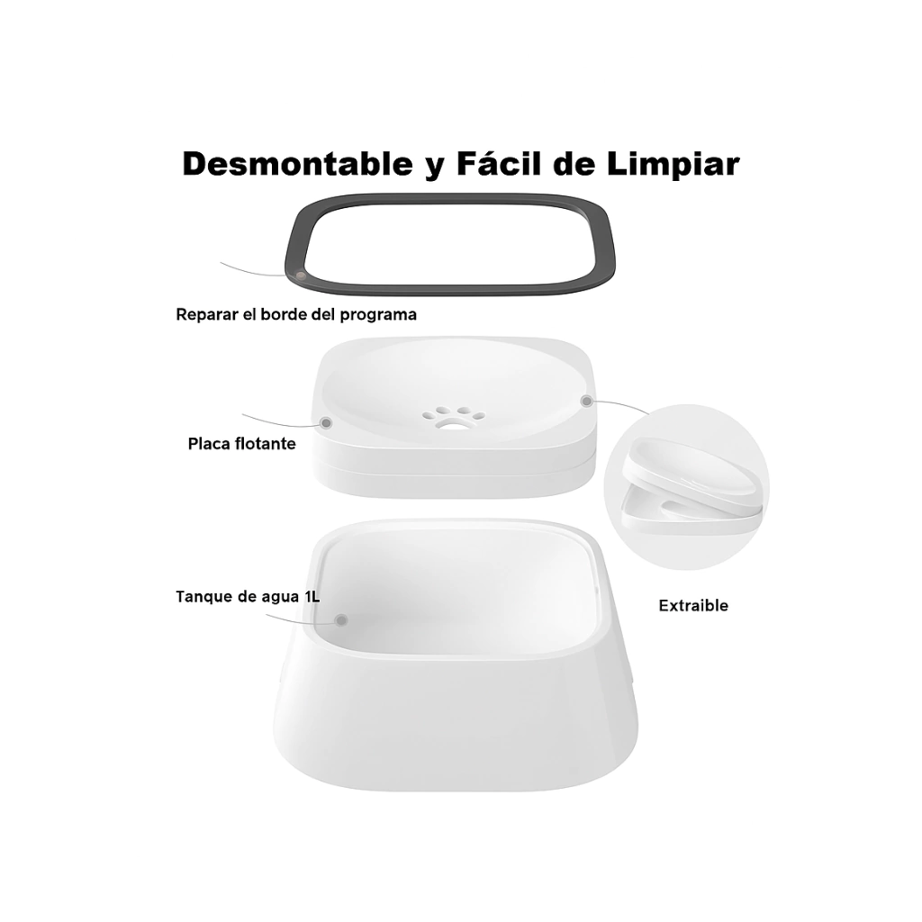 ✅ Diseño Antiderrame: Su placa flotante evita derrames y salpicaduras, manteniendo el área de alimentación limpia y seca.