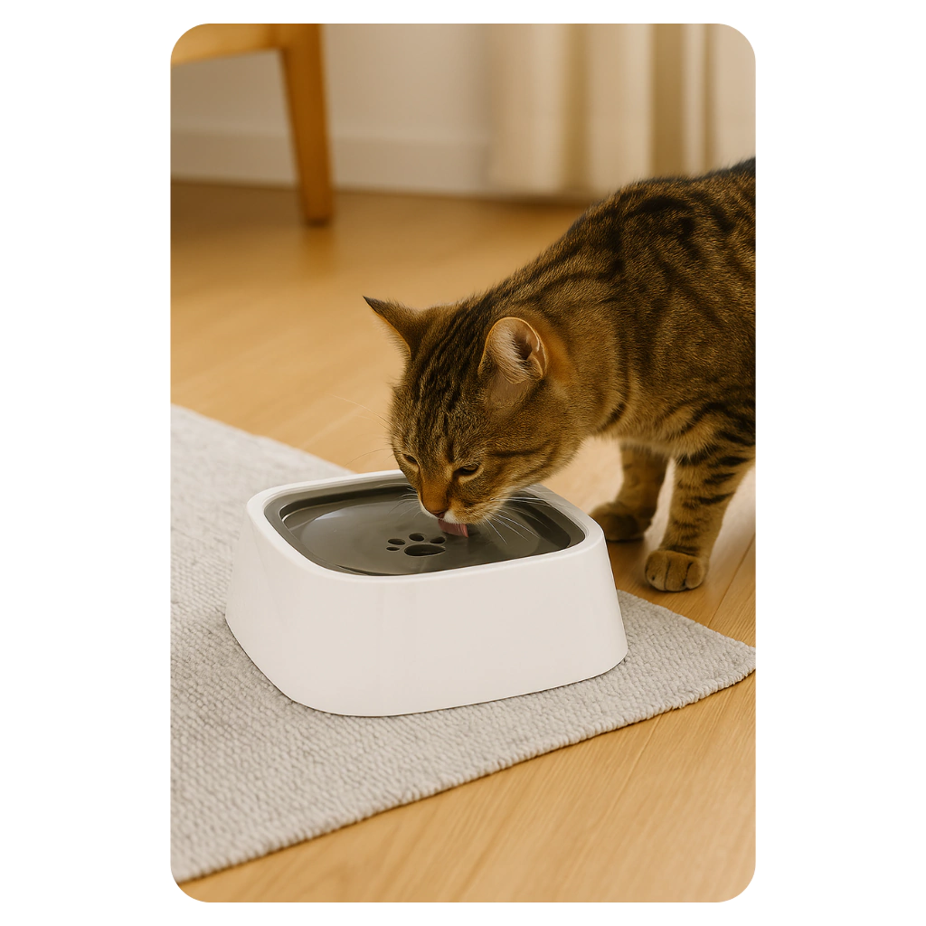 ✅ Base Antideslizante: Evita que el plato se mueva mientras tu mascota bebe agua.