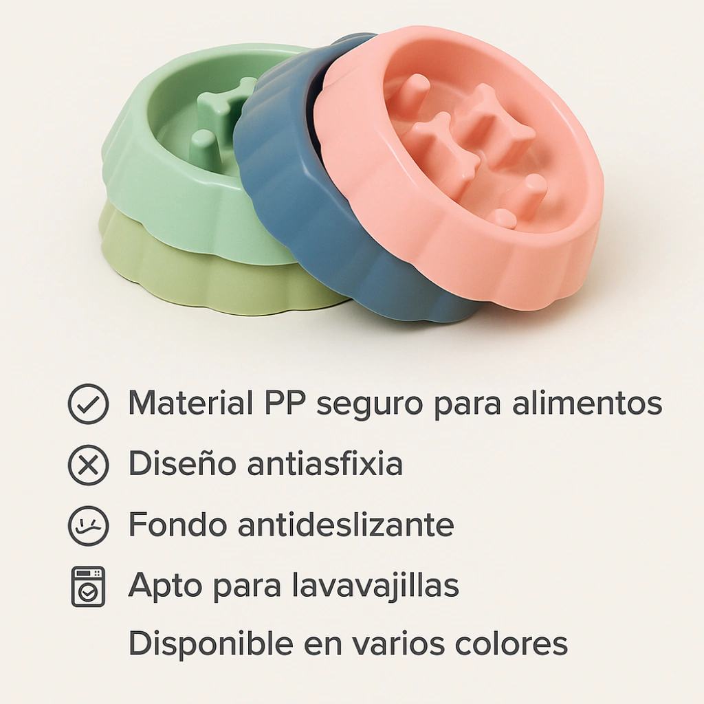 Diseñado para mejorar la salud digestiva de tu mascota, este comedero lento evita atragantamientos, reduce la ansiedad al comer y convierte cada comida en una experiencia más saludable y controlada.